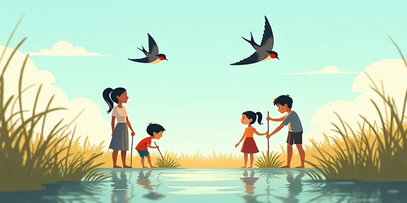 «Hvis du smadrer en demning, strømmer alt vannet ut på en gang,» sa han, ikke uvennlig. «Det løper vilt, så er det borte. Hvis det finnes et hull et annet sted, et lite som sløser mer sakte, ville dere ikke heller finne det?»«Luan,» sukket smeden, «du fikser sko. Hold deg til ditt fag. »Men Luan hadde allerede lagt merke til den desperate måten selv de høylydte mennene svelget når de sa ordet vann. Han gikk ut og kjente på luften. Det var den typen morgen som la varmen over deg som et teppe. Han tok en lengde silketråd og knøt den fra den ene siden av smugene til den andre, så hang han en rekke uthulte eikenøttskall under den. Barn samlet seg, nysgjerrige. «Hva er det?» spurte et. «Det er et nett for å fange det usynlige,» sa Luan. «Når natten kommer, kjøles luften. Små dråper vil dannes, som pust på glass. Tråden vil hjelpe dem å samle seg, og de vil falle i koppene. Det kalles dugg. »Barna fniste. «Du kan ikke drikke usynlige ting. »«Bare hvis du er for stolt til å ta med en kopp,» sa Luan og smilte. Den natten satte Luan i gang flere eksperimenter en leirkrukke begravd opp til halsen i hagen for å sige vann sakte, et lerret strukket på stolper for å se hvordan tåke ville perle seg på det, små grøfter han hvilte ut langs konturen av bakken bak skolen, buet som smil. Han tegnet små piler i jorden.